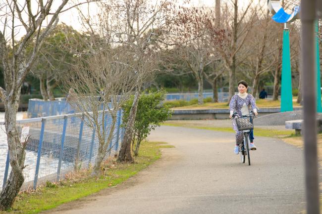 光文化の森公園までは比較的平坦な道が続き、自転車で走りやすいです。光文化の森公園は横芝光町役場の向かいにあり、園内には図書館やフランス庭園などが整備されています。桜やフランス庭園のマロニエが咲き誇る春は、園内が一層華やかに。フォトジェニックスポットとしても注目です!