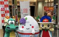 栄町の龍夢(ドラム)くんと、多古町のふっくらたまこさんと一緒に地元の野菜と特産品をアピールしてきたよ。